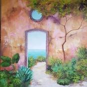 This unique and original contemporary artwork "Villa paradisio" on the subjects of Marine, Landscapes has been created by the contemporary artist Bessé Laurelle.