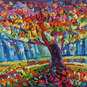 This unique and original contemporary artwork "Autumn Blaze" on the subject of Landscapes has been created by the contemporary artist Georgieva Vanya.