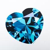 The artist represents a photorealistic sapphire heart with all its brilliance and fascinating reflections.