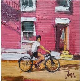 This unique and original contemporary artwork "Afternoon ride" on the subject of Urban has been created by the contemporary artist Joro.