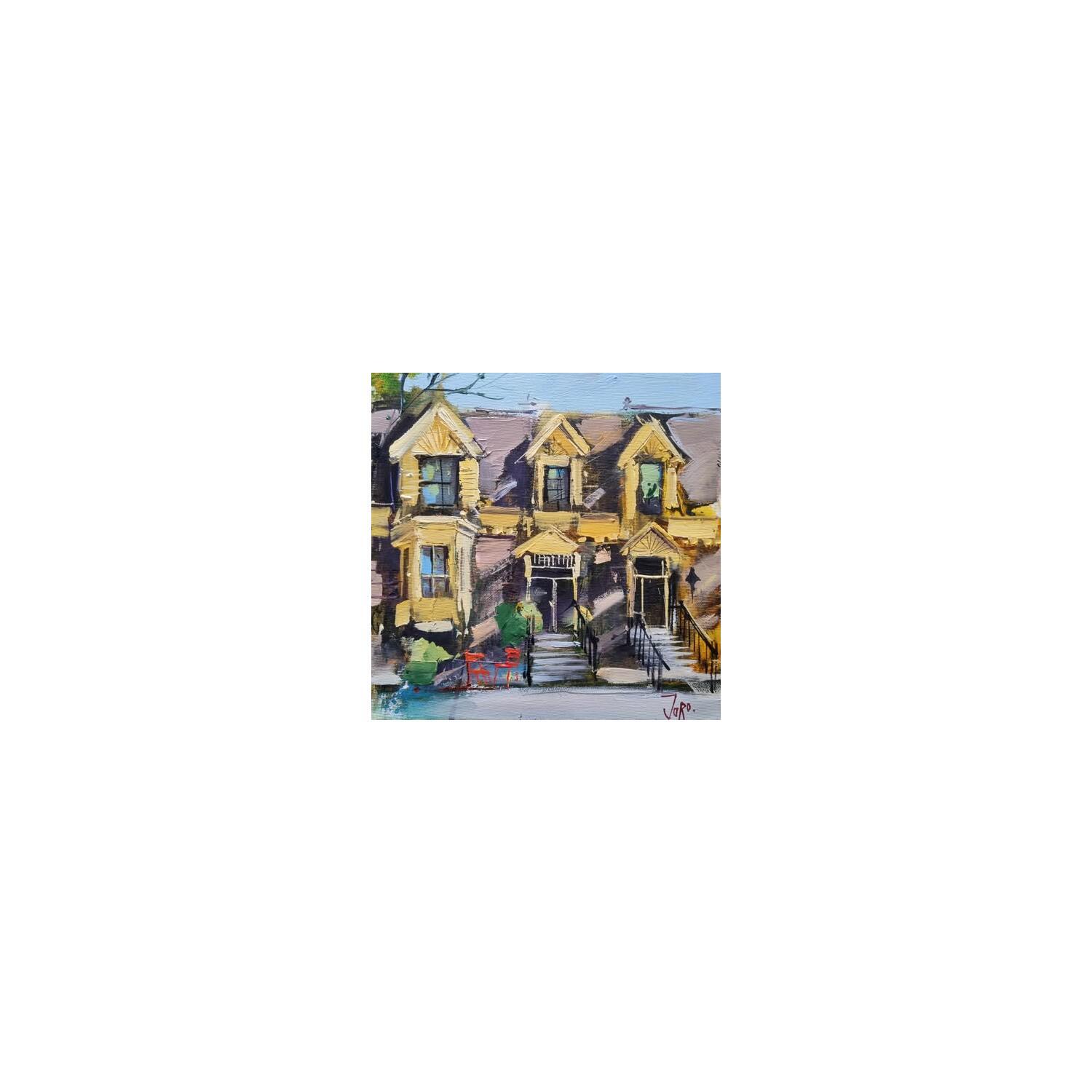 This unique and original contemporary artwork "Morning sun light" on the subject of Urban has been created by the contemporary artist Joro.
