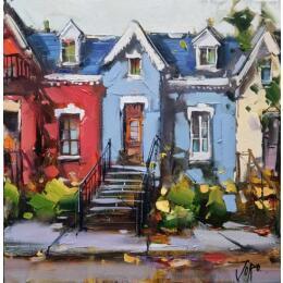 This unique and original contemporary artwork "My street " on the subject of Urban has been created by the contemporary artist Joro.