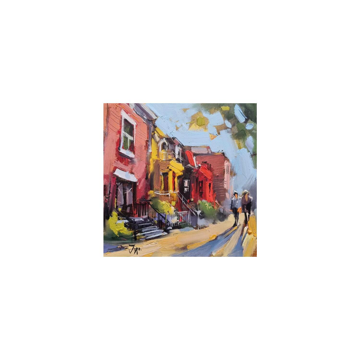 Painting Promenade dans le quartier  by Joro | Painting Figurative Urban Oil