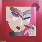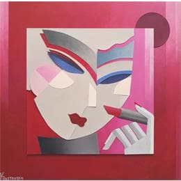 This unique and original contemporary artwork "Red Lipstick" on the subject of Portrait has been created by the contemporary artist Gustavsen Karl.