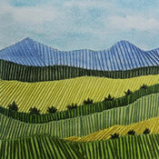 Arid geometryPainting Arid geometry by Vazquez Laila | Painting Figurative Landscapes Watercolor Textile