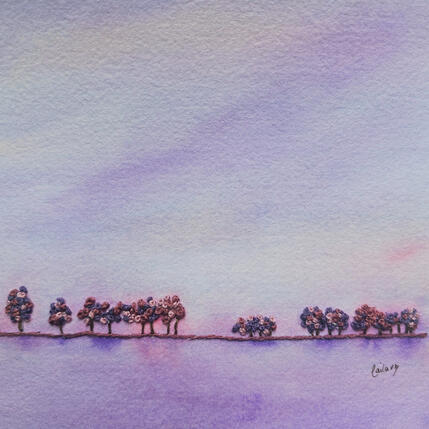 This unique and original contemporary artwork "Silhouettes in distance" on the subject of Landscapes has been created by the contemporary artist Vazquez Laila.