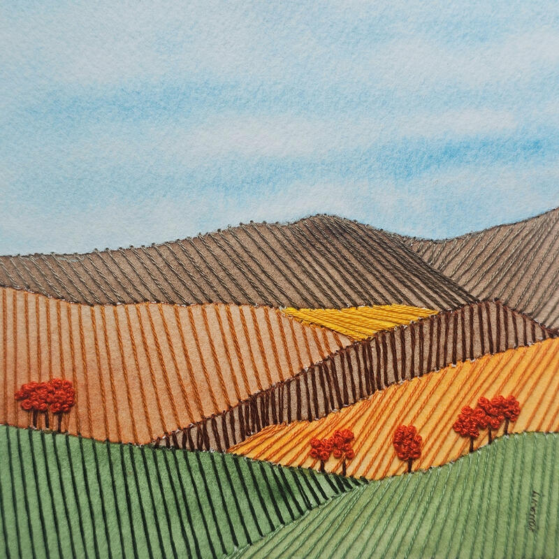 This unique and original contemporary artwork "Stitched horizon" has been created by the contemporary artist Vazquez Laila.