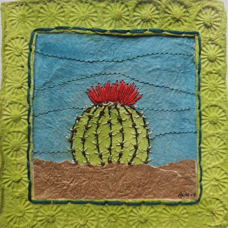 The artist used Textile, Watercolor media on Paper to create this Subject matter, Small size painting.