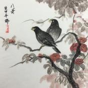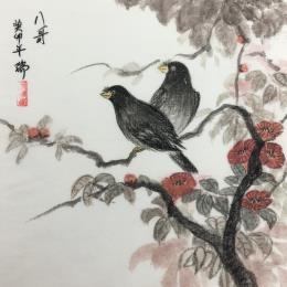 This unique and original contemporary artwork "Les deux mainates" on the subjects of Animals, Landscapes has been created by the contemporary artist Amblard Rui.