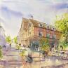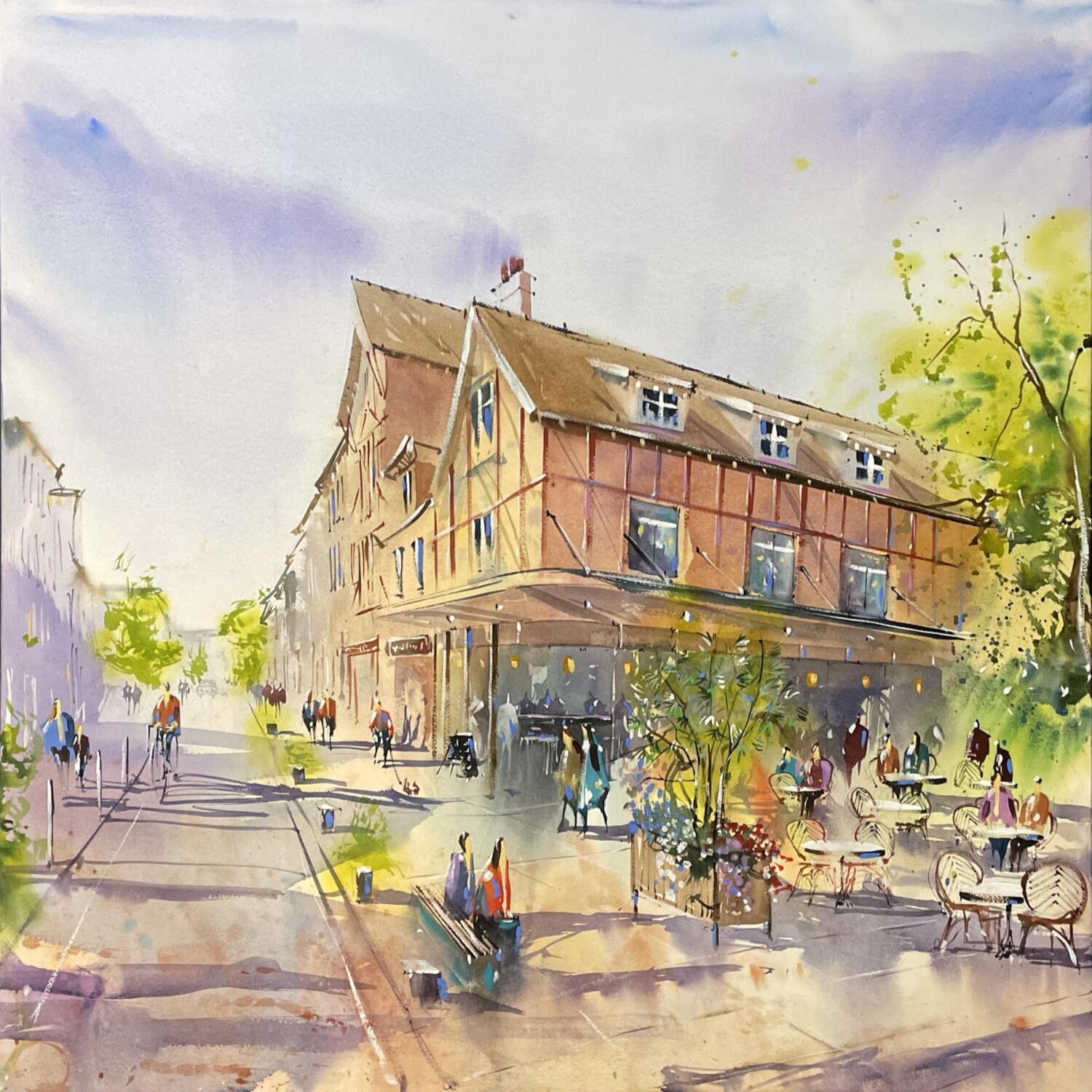 Painting Place de café à Troyes by Bailly Kévin  | Painting Figurative Urban Architecture Watercolor Ink
