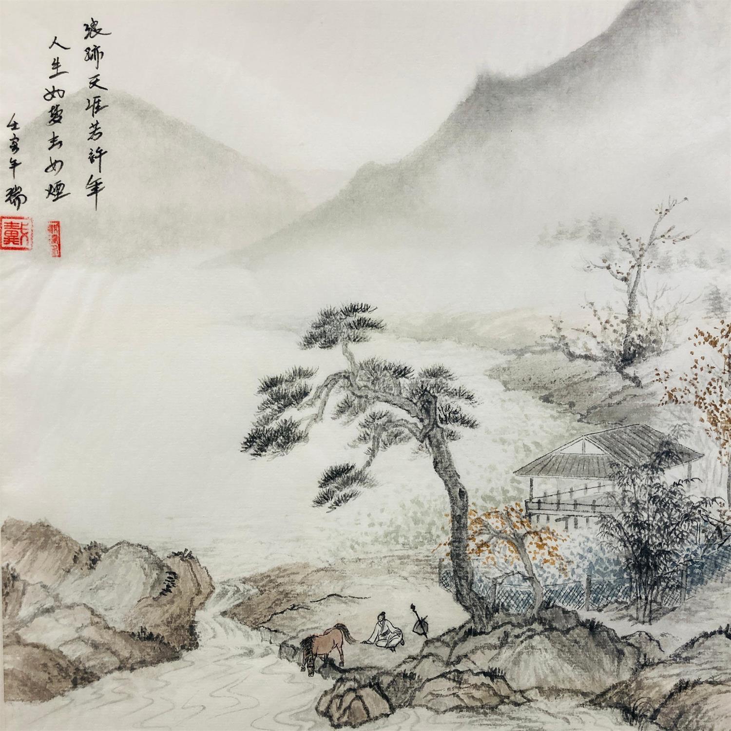 This unique and original contemporary artwork "With my horse, to rove all over world" on the subjects of Landscapes, Life style has been created by the contemporary artist Amblard Rui.