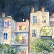 Painting Immeubles by Balme Delphine | Painting Figurative Life style Watercolor
