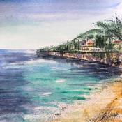 Saint Jean Cap-FerratPainting Saint Jean Cap-Ferrat by Hoffmann Elisabeth | Painting Figurative Marine Watercolor