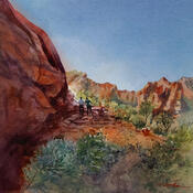 Painting Sedona 147 by Seruch Capouillez Isabelle | Painting Figurative Landscapes Urban Nature Watercolor