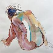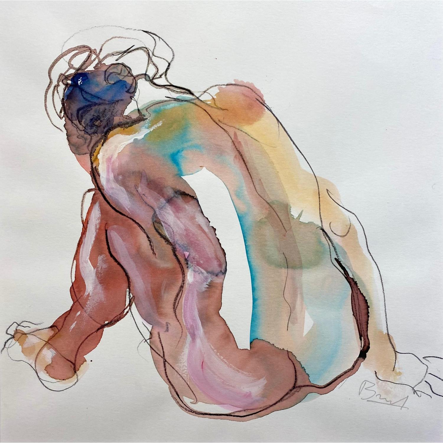 This unique and original contemporary artwork "Pia, dos bleu et rose" on the subject of Nude has been created by the contemporary artist Brunel Sébastien.