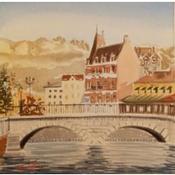 This unique and original contemporary artwork "Les Alpes depuis la rivière" on the subject of Urban has been created by the contemporary artist De León Lévi Marcelo.
