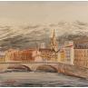 This unique and original contemporary artwork "Ville entre rivière et montagnes" on the subject of Urban has been created by the contemporary artist De León Lévi Marcelo.