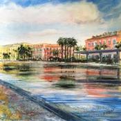 Reflet de Nice Painting Reflet de Nice  by Hoffmann Elisabeth | Painting Figurative Urban Architecture Watercolor