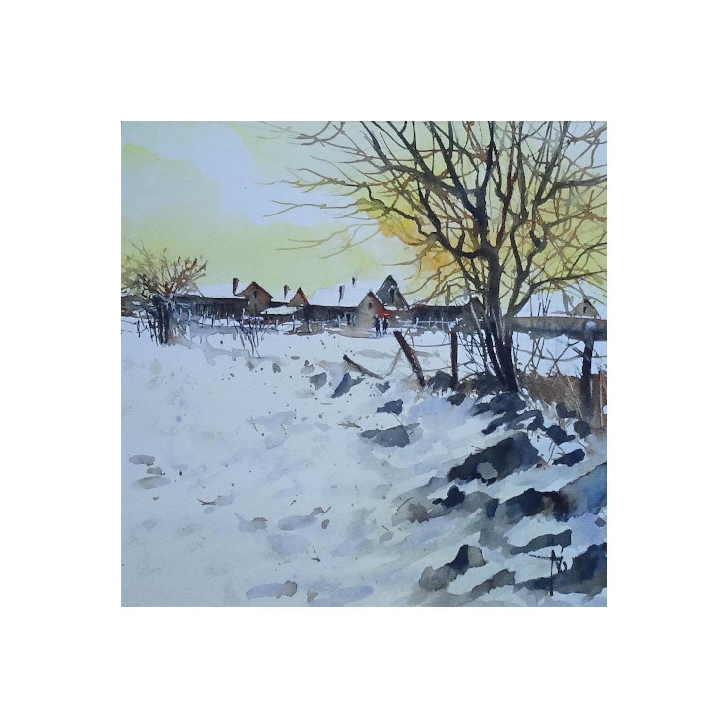 The artist used Watercolor medium on Paper to create this Figurative, Small size painting.