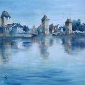 Ponts Couverts Painting Ponts Couverts  by Abbatucci Violaine | Painting Figurative Watercolor