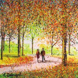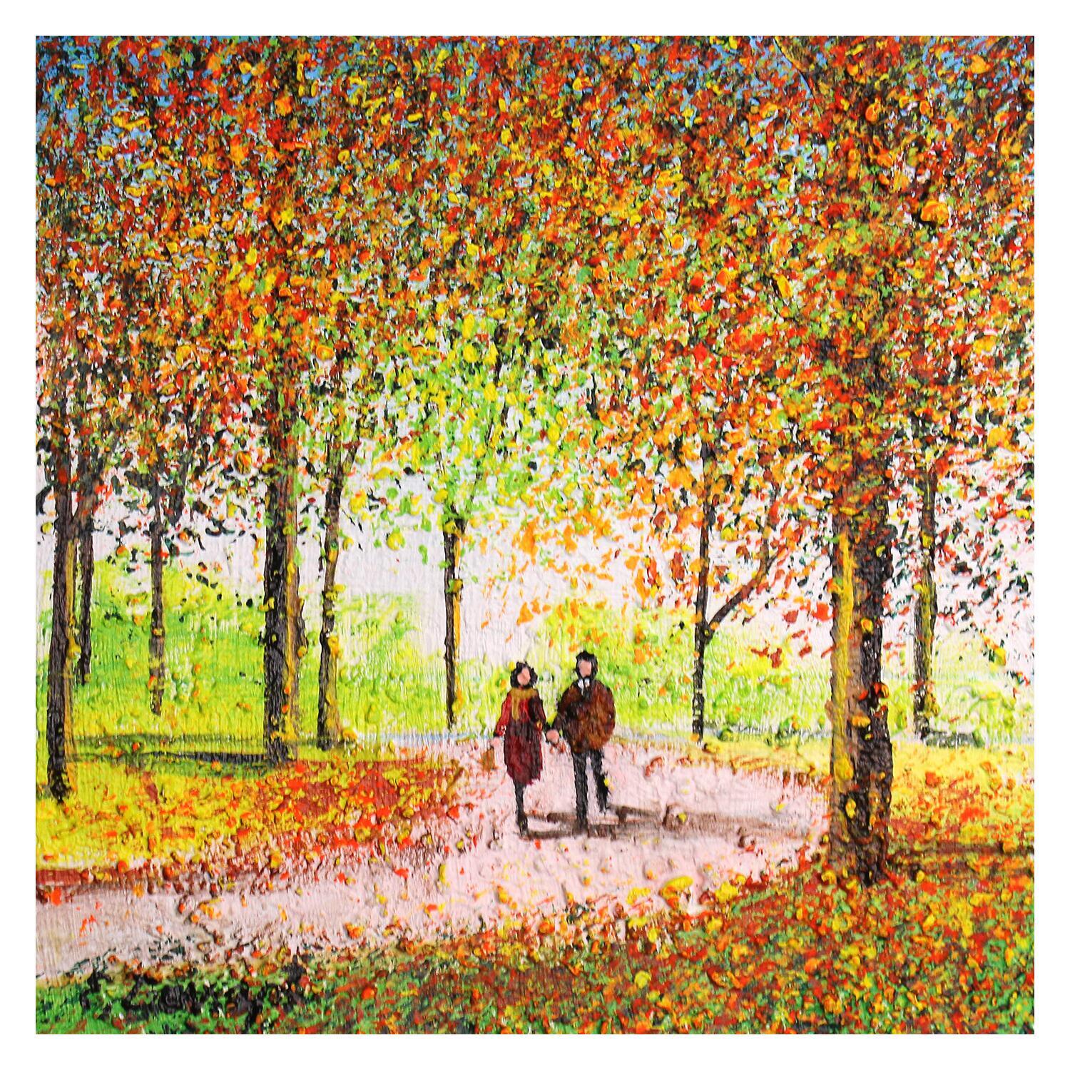 The artist used Acrylic and Sand techniques to create this small-format Impressionist-style painting on canvas.