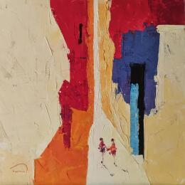 This unique and original contemporary artwork "Reflejos rojos" on the subjects of Life style, Urban has been created by the contemporary artist Tomàs.