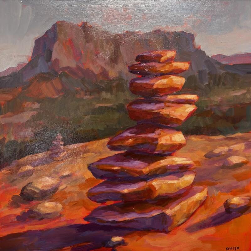 Jamie Kivisto is an American artist based in the Arizona desert. Her career began on the beaches of Venice Beach, where she sold her first canvases after studying art in Cincinnati. Self-taught to the core, she sees painting as a visual diary, a mirror of her inner transformations. Her work blends resilience, spirituality and connection to nature. Each work is a living, intuitive exploration rooted in human experience.