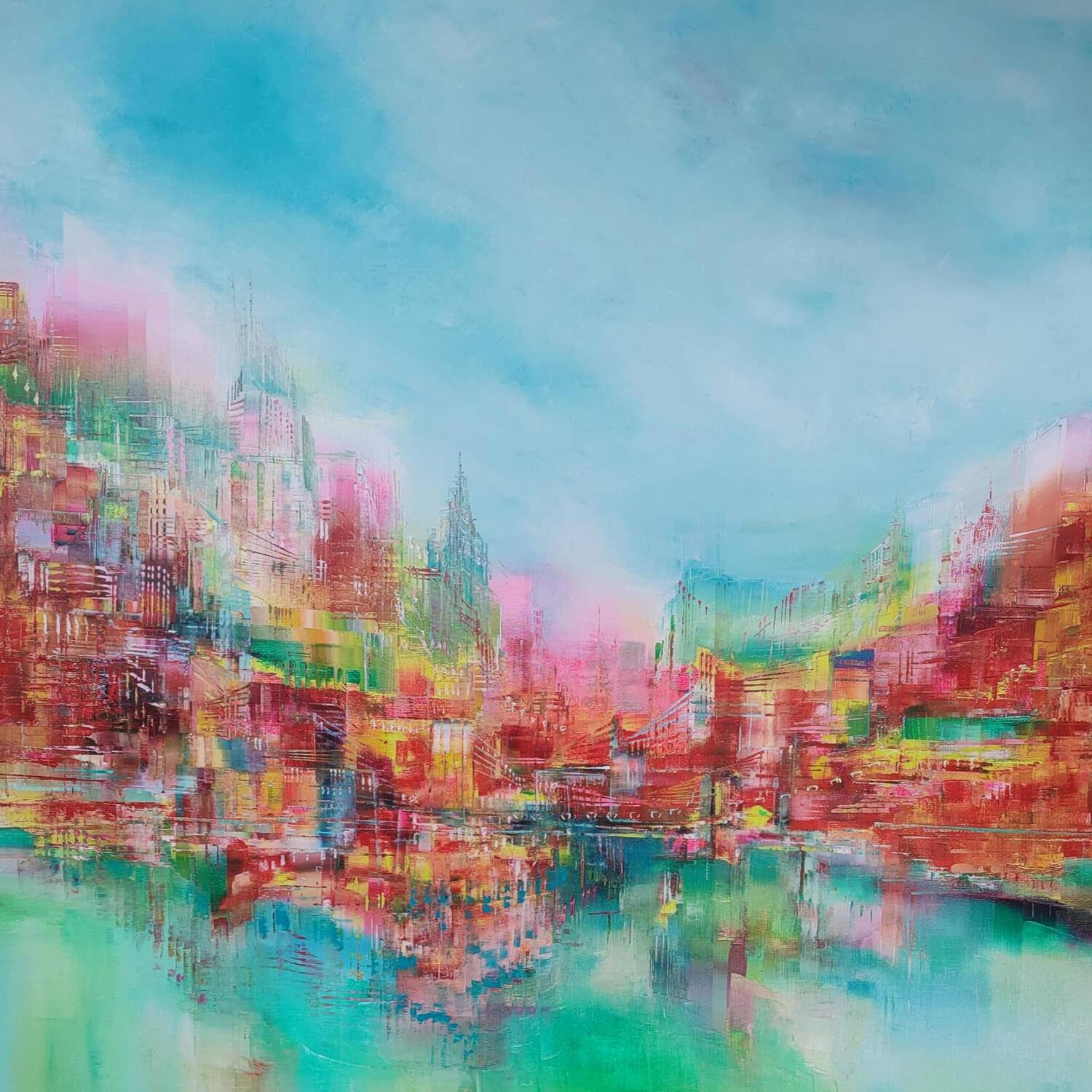 At the age of 12, during a visit to the Tate Gallery in London, Emmanuelle encountered the first paintings that made her want to paint. She decided to attend a fine arts workshop outside her regular school curriculum, and after receiving a high school diploma in the arts, she joined the School of Fine Arts. She studied drawing and preferred figurative painting initially. The light of the Brittany coast, always changing and capricious, was a source of inspiration and desires for her. After painting from nature and photos, she decided to give free rein to her imagination and to trust the colours as her only medium, and thus she moved definitively to abstraction. On a trip to Russia she met many passionate artists (musicians, actors, filmmakers), and on returning to France, she became a schoolteacher. The overwhelming artistic imagination of children taught her much and this experience helped her to affirm her own colours as her 'joie de vivre'. She then devoted herself entirely to painting.