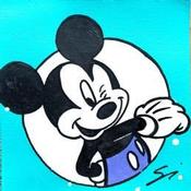 This unique and original contemporary artwork "MICKEY FLUOR HAND" on the subjects of Child, Pop icons, Minimalist has been created by the contemporary artist Mestres Sergi.