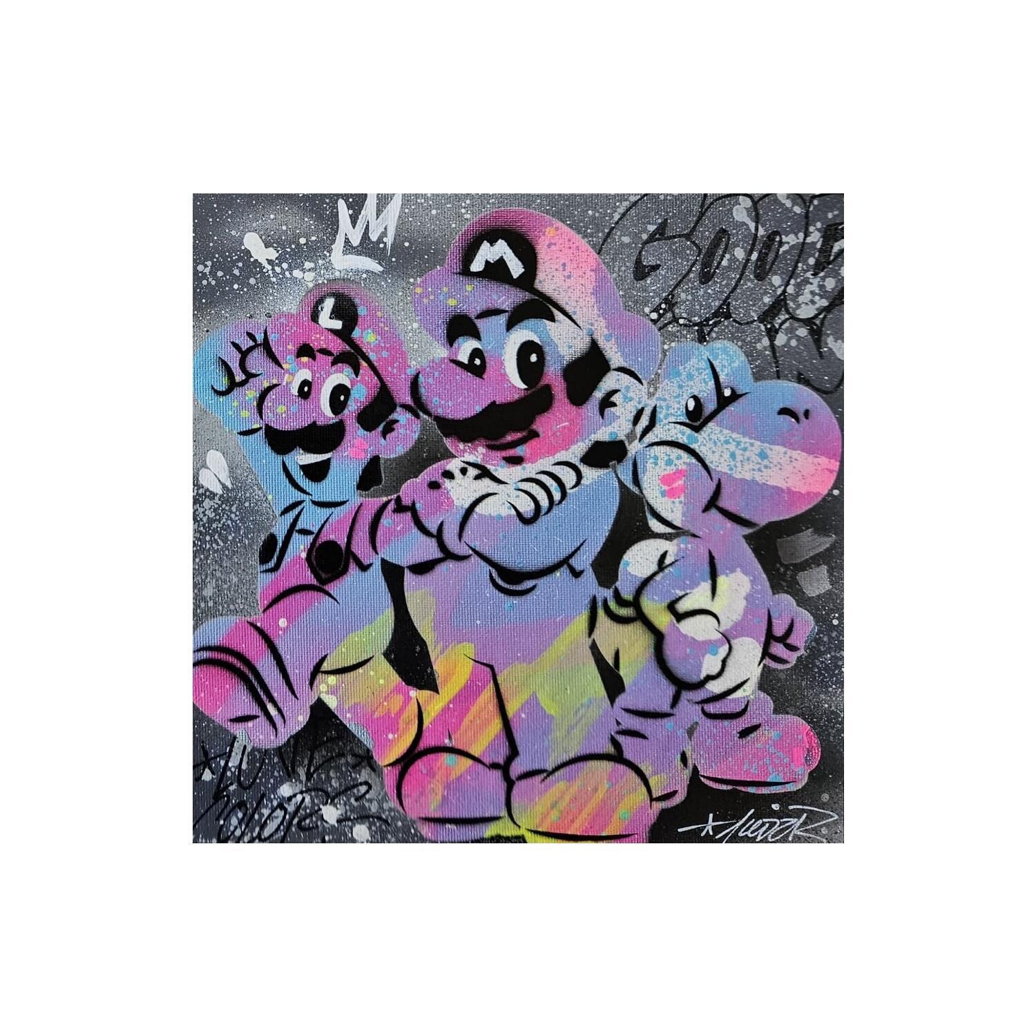 This unique and original contemporary artwork "Luigi Mario Yoshi" on the subject of Pop icons has been created by the contemporary artist Lemoine Mael.