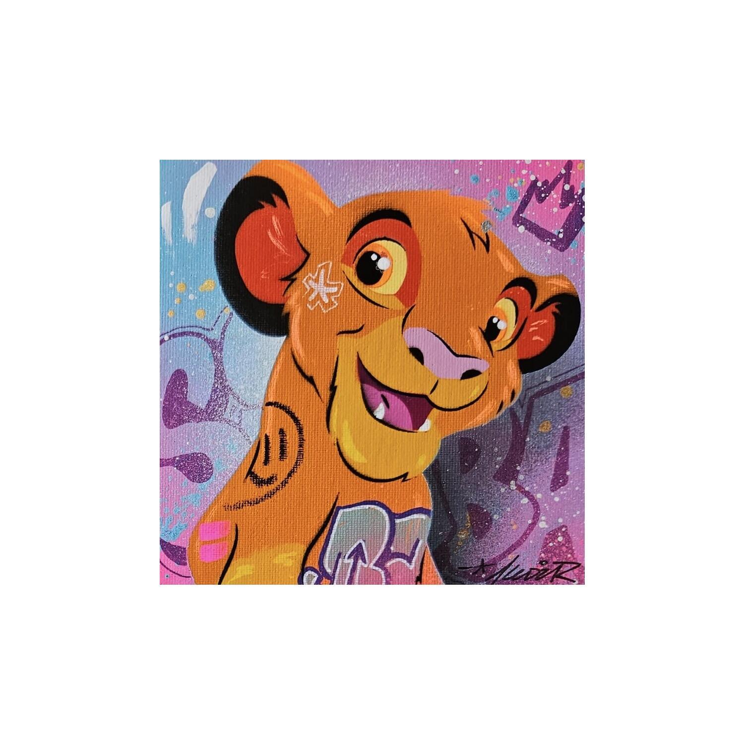 This unique and original contemporary artwork "Simba" on the subject of Pop icons has been created by the contemporary artist Lemoine Mael.