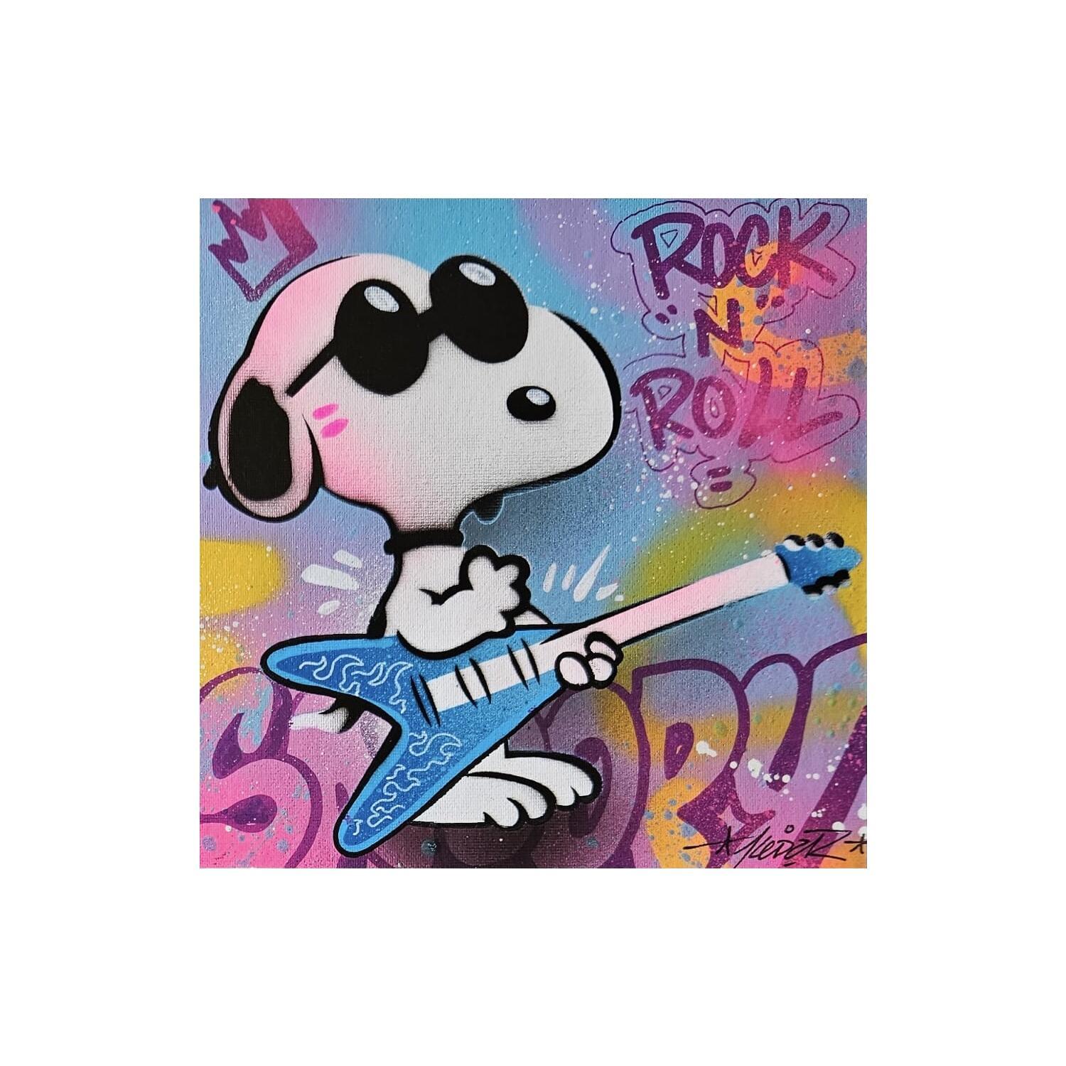 This unique and original contemporary artwork "Snoopy rock" on the subject of Pop icons has been created by the contemporary artist Lemoine Mael.