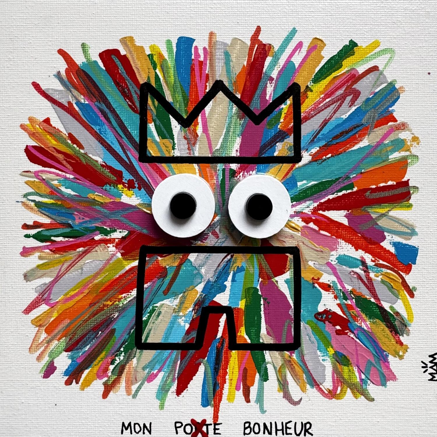 This unique and original contemporary artwork "MON POTE" was created by contemporary artist Mam. The artist used the Acrylic technique to create this small-format Pop-art style painting on canvas.