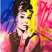 This unique and original contemporary artwork "AUDREY" on the subject of Pop icons has been created by the contemporary artist Mestres Sergi.