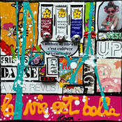 The artist used Gluing, Upcycling, Acrylic media on Canvas board to create this Pop-art, Small size painting.