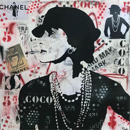 This unique and original contemporary artwork "Coco Chanel " on the subject of Pop icons has been created by the contemporary artist Kikayou.