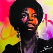 This unique and original contemporary artwork "Nina Simon" on the subjects of Pop icons, Music has been created by the contemporary artist Mestres Sergi.