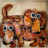 This unique and original contemporary artwork "2 Young bassets" on the subject of Animals has been created by the contemporary artist Maury Hervé.