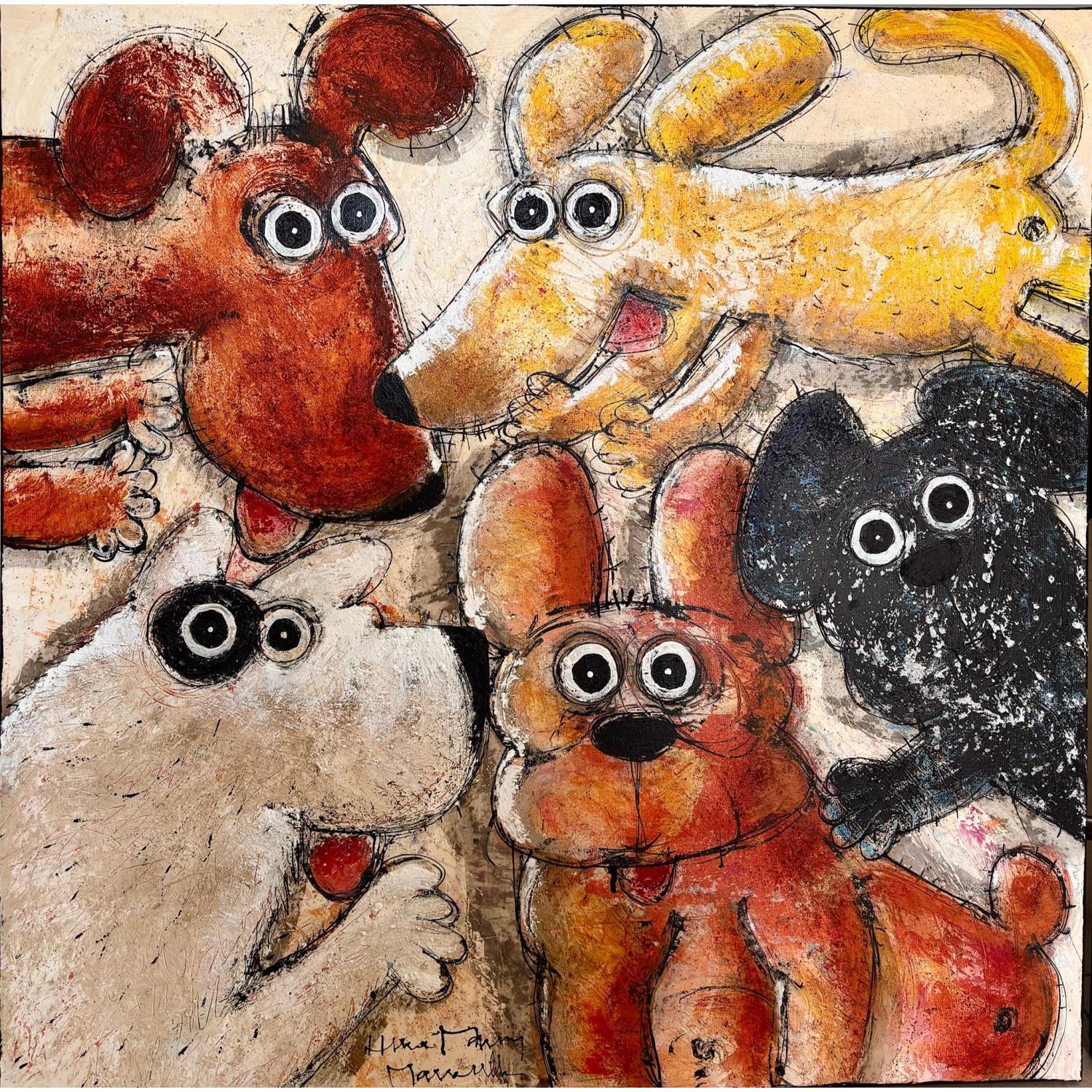 Chien jaune!Painting Chien jaune! by Maury Hervé | Painting Raw art Animals Acrylic Ink Sand Pigments