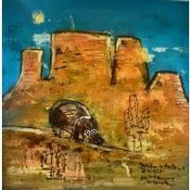 The artist used Acrylic, Ink, Pigments, Sand media on Paper to create this Raw art, Small size painting.
