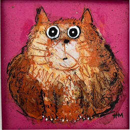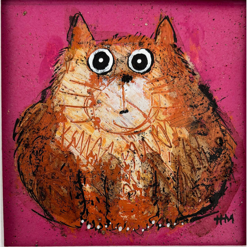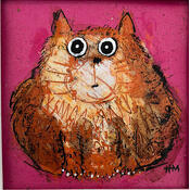 This unique and original contemporary artwork "Pink cat" on the subject of Animals has been created by the contemporary artist Maury Hervé.