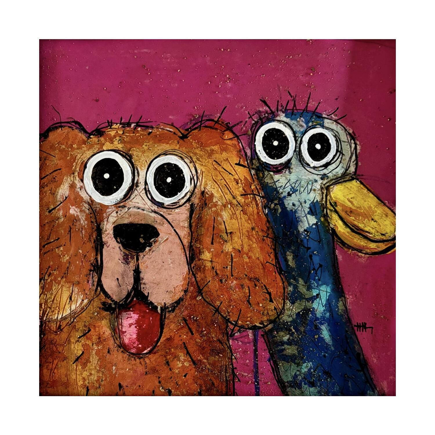 This unique and original contemporary artwork "Selfie à la ferme!" on the subject of Animals has been created by the contemporary artist Maury Hervé.