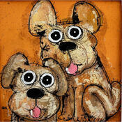 This unique and original contemporary artwork "Two Young bulldog" on the subject of Animals has been created by the contemporary artist Maury Hervé.