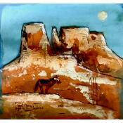 Painting Coyote at night in AZ by Maury Hervé | Painting Raw art Animals