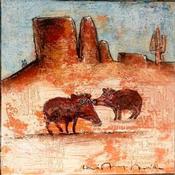 Painting Javelina in the Red Rocks of Sedon by Maury Hervé | Painting Raw art Animals