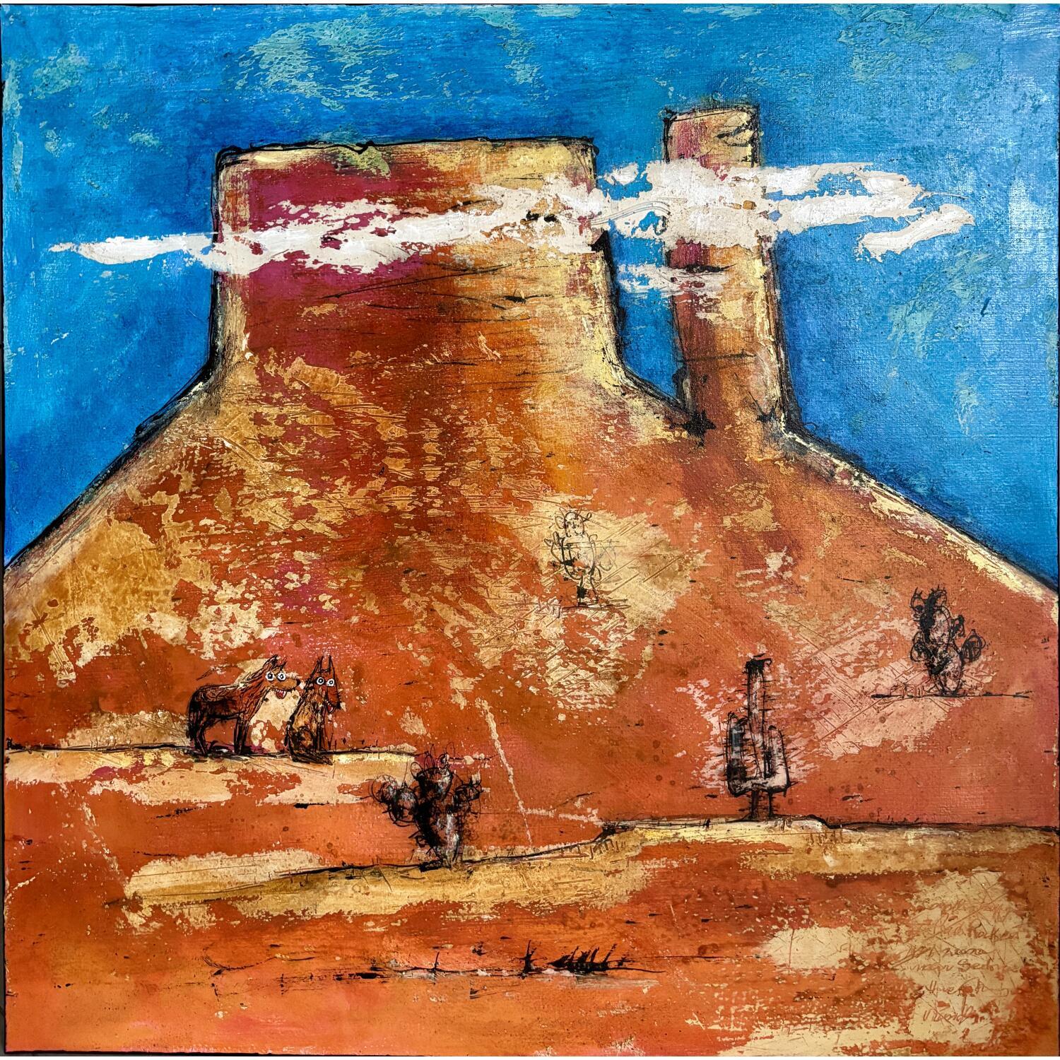 This unique and original contemporary artwork "Two Coyotes Free in Arizona" on the subject of Animals has been created by the contemporary artist Maury Hervé.