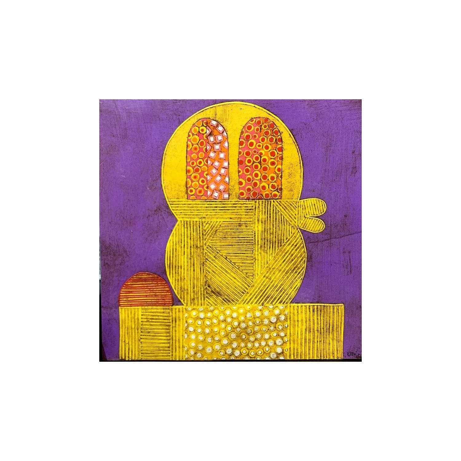 The artist used Cardboard, Gluing media on Cardboard to create this Raw art, Small size painting.