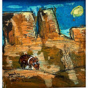 This unique and original contemporary artwork "Red Rockies at night" on the subject of Animals has been created by the contemporary artist Maury Hervé.