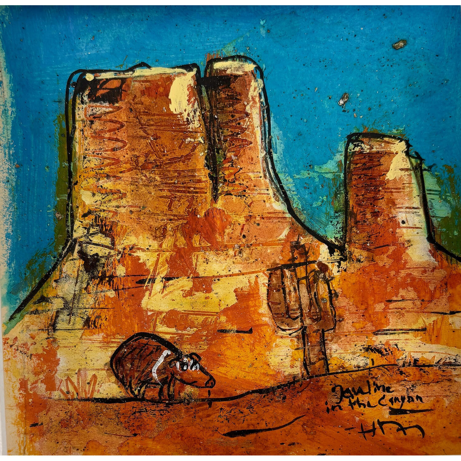 This unique and original contemporary artwork "Red Rockies" on the subject of Animals has been created by the contemporary artist Maury Hervé.