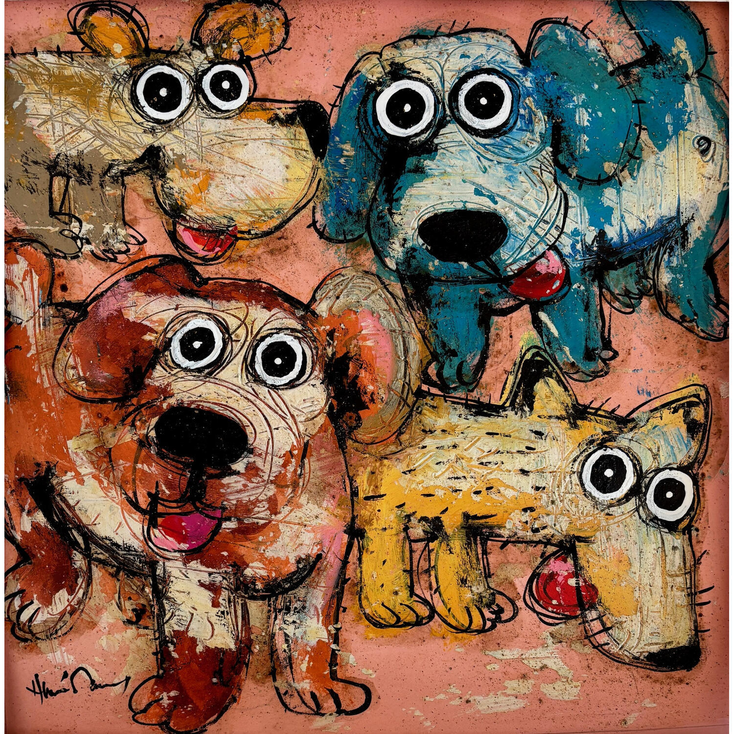 This unique and original contemporary artwork "The team !" on the subject of Animals has been created by the contemporary artist Maury Hervé.
